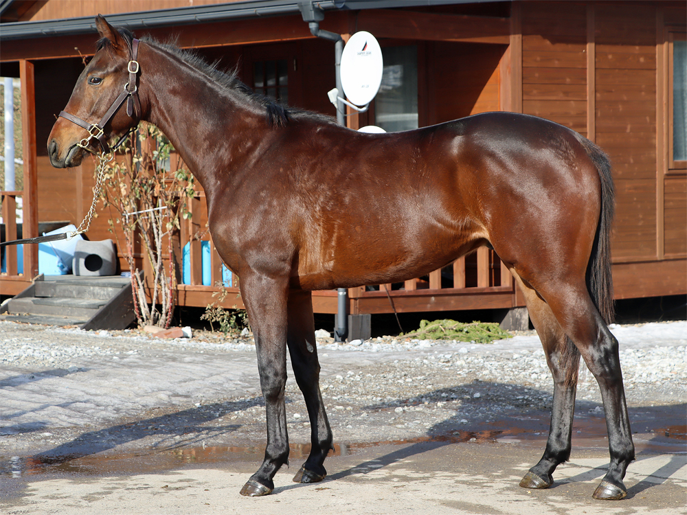 | 現在はBTCの屋内600mダートコースでハッキングキャンター2400~3600m、屋内1000m坂路1本(上限18秒ペース)のメニューで調整しています。担当者は「調教開始後ここまで問題なく乗り込めていて、順調にペースアップを図っています。のんびりした性格ですが、現状メニューにも割とスンナリ対応してくれました。まだ余裕たっぷりとまではいかないまでも、しっかり走れていますし、体力も付いてきています。性格面も相まってやや奥手な印象を受けるため、もうしばらくはジックリ進めていくつもりです」と話していました。 |