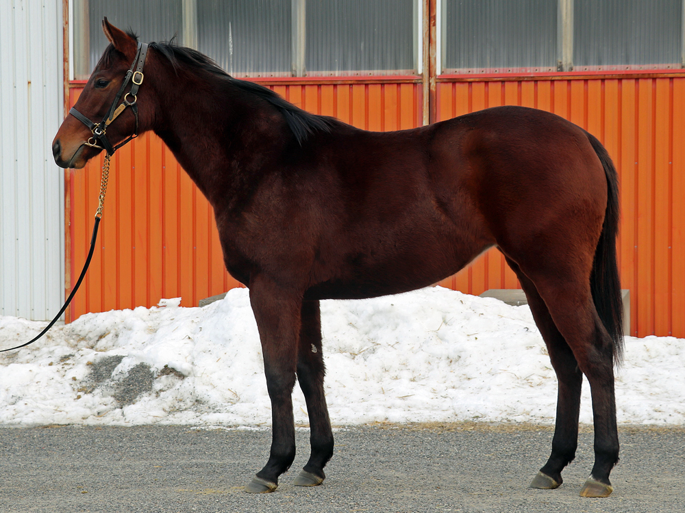 | 現在は舎飼されています。担当者は「年明けからBTCの坂路で18秒くらいのところまで進めていたのですが、今月下旬に左前を挫跖したため、一旦調教を控えています。装蹄師に診てもらったところ、痛めているのが蹄叉だったので何も巻いたりせず、経過観察することにしました。大事を取って時間をかけているものの、少しずつ治ってきていますし、近いうちに乗り出せるでしょう。まだ子供っぽいところがあり、ハミを嫌ってか頭が高くなりやすいので、騎乗再開後はそのあたりを修正していきます」と話していました。 |