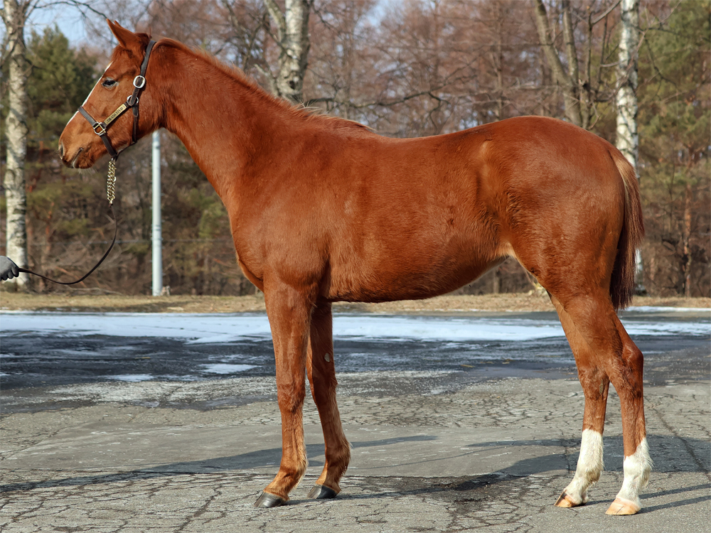 | 現在は坂路2本(上限18~20秒ペース)のメニューで調整しています。担当者は「この中間も乗り込みを重ねることで、ハミを嫌がる素振りは見せなくなり、徐々に慣れてきている様子。坂路を駆け上がる際には気持ちが先走るところがあるので、今以上にハミ受けを安定させ、操縦性を高めることを念頭に置きながら日々のトレーニングに励んでいます。走り自体は悪くはなく、背中の感触は上々。当面は課題の克服と基礎体力の底上げを最優先に取り組んでいきます」とのことで、この中間に来場した加藤公太調教師は「初仔ですし、今時期のサイズはこのくらいで十分でしょう。馬体の成長具合を見ながら進めてもらえればと思います」と話していました。 |