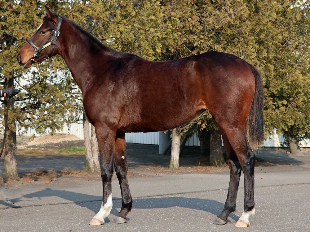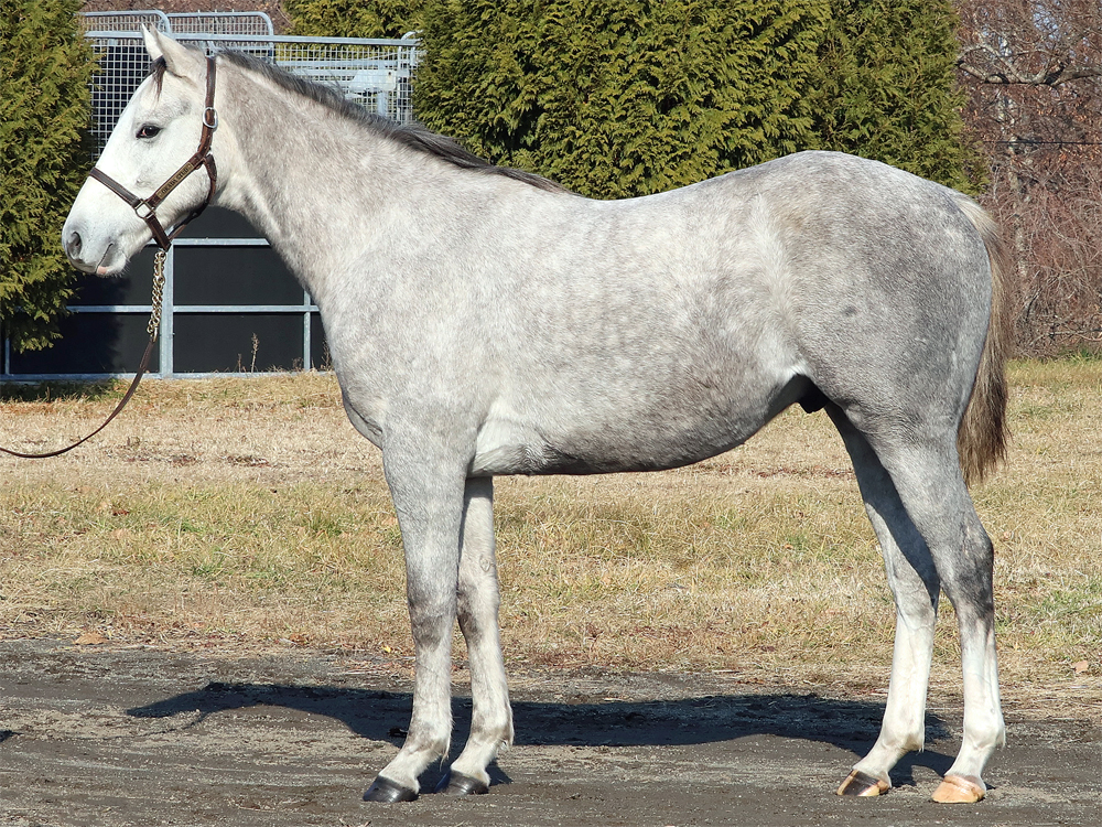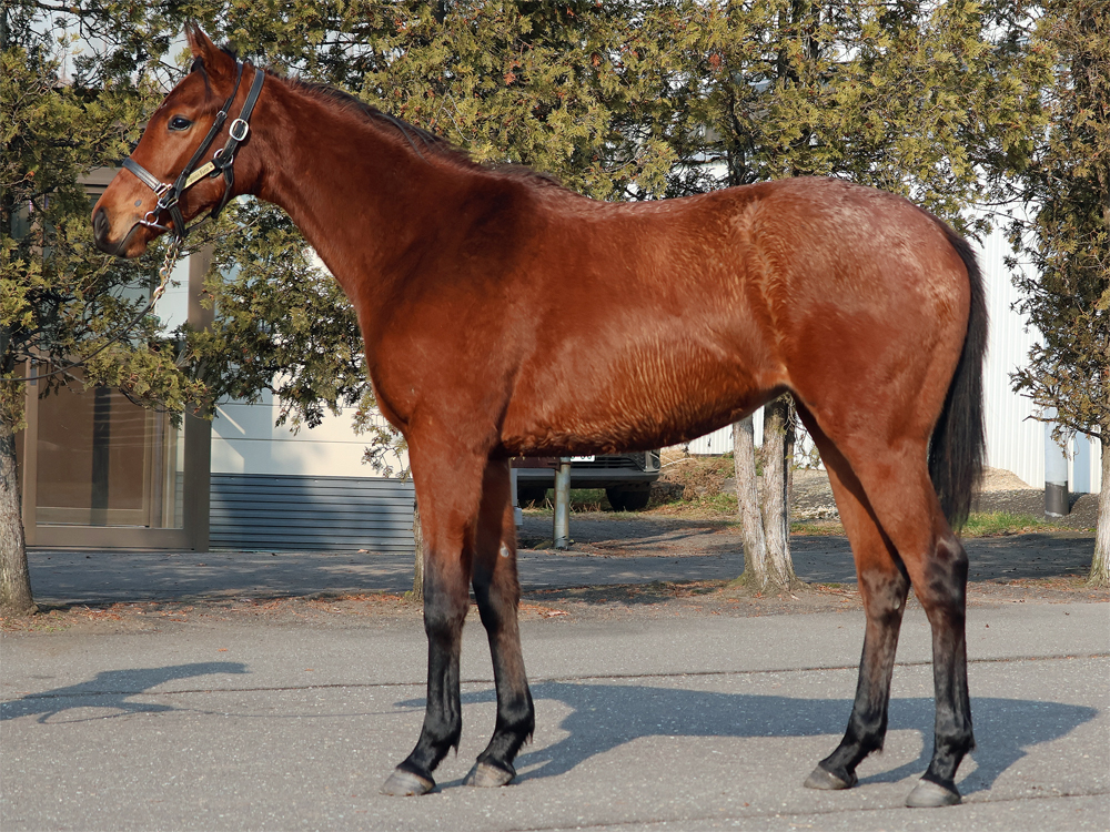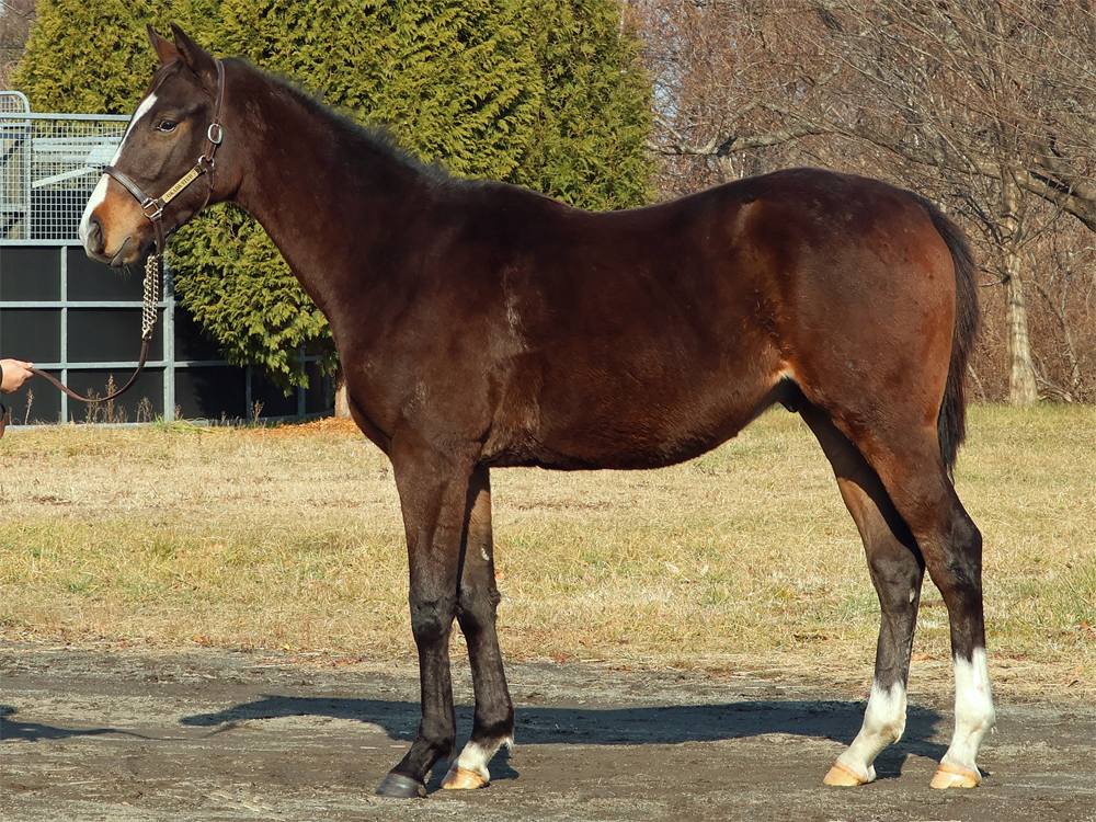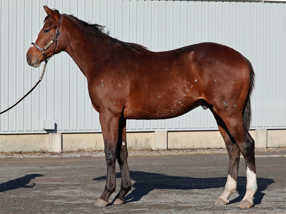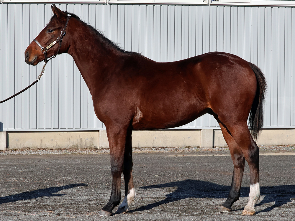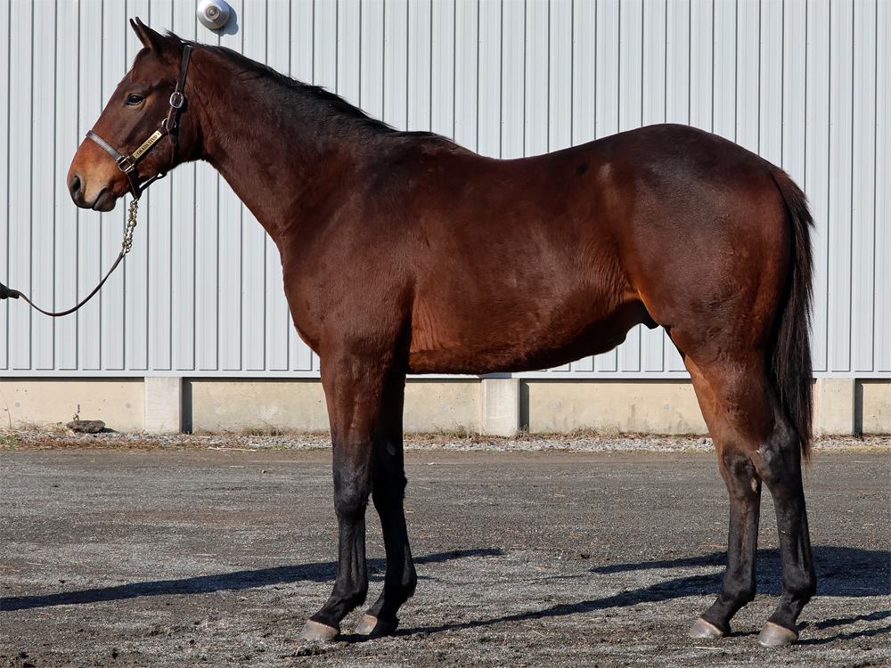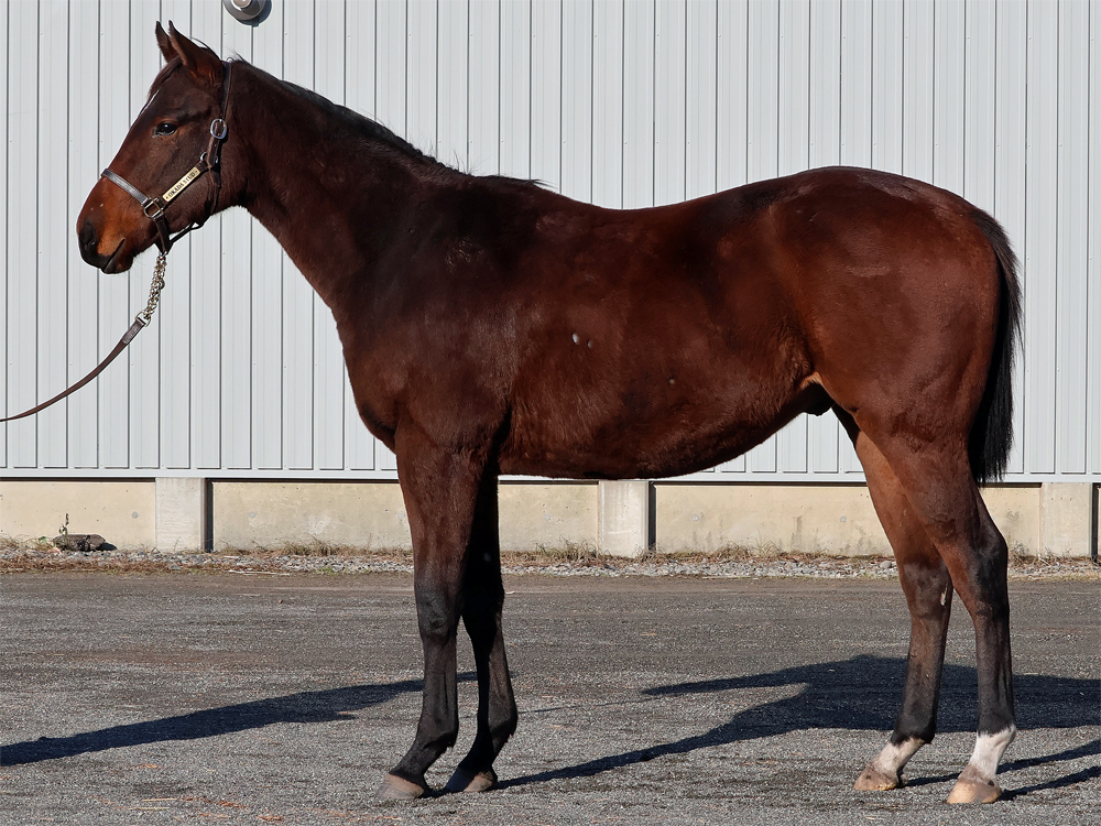 現在はBTCの屋内600mダートコースでハッキングキャンター2400~3600m、屋内1000m坂路1本(上限20秒ペース)のメニューで調整しています。担当者は「馴致が完了し、今月から馬場での乗り運動を開始しました。牧場内で乗っても特に問題なく、下旬からはBTCでの調教も開始しています。トラック、坂路ともに真っすぐ走れており、特にクセなどもありません。バランスはいいので、あとは力を付けていきたいところ。マジェスティックウォリアー産駒は気難しいタイプがちらほらいるのですが、今のところそういった面は見せておらず、この先もスムーズに進めていけそうです」と話していました。