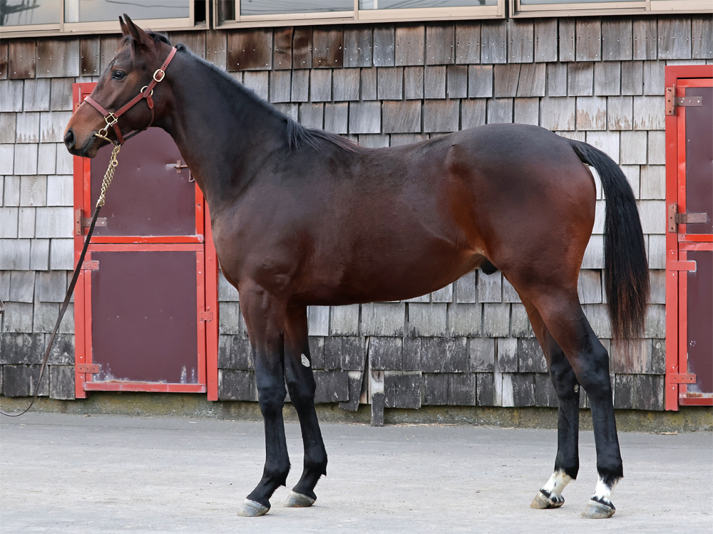 現在は夜間放牧と並行して馬場1周と坂路1本(上限22~23秒ペース)のメニューで調整しています。担当者は「リフレッシュを終えて、今月上旬から騎乗を再開しました。休養効果で幅も出て、体高の割にドッシリとした体つきになってきましたし、ブレずに登坂できているように、この時期にしては体幹もしっかりしている印象。乗り込みが進んで筋肉量が増えてくれば、力強いフットワークに変わってきそうです」と話していました。