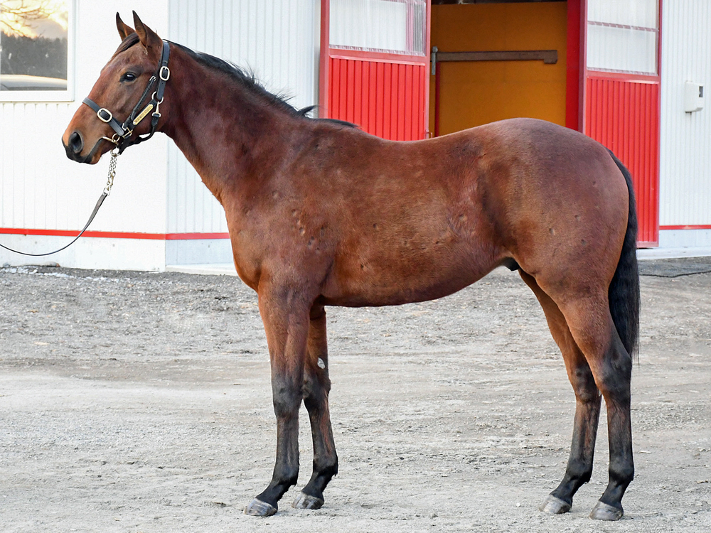 「今シーズンのホッカイドウ競馬が終了し、一段落ついたタイミングで入場させました。すでにブレーキングを終えて馬場入りしていたとのことですが、環境がガラッと変わり戸惑う仕草が見られたので、馴致のおさらいがてら今は乗り慣らしをおこなっています。冬場は坂路主体に乗り込み、来春の始動に向けて基礎体力の向上に努めていくつもり。初めてのお付き合いになりますが、精一杯やらせていただきますので、どうぞよろしくお願いいたします」(米川昇調教師)