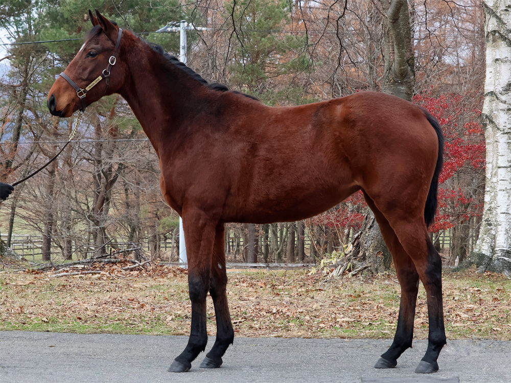 現在はダートコースでハッキングキャンター4000mのメニューで調整しています。担当者は「今月から馬場での調教を開始しました。乗り進めても脚元などに問題はなく、飼い葉もしっかり完食。小柄で動きも柔らかい分、非力なようにも映りますが、それに関してはディープインパクト系の牝馬の特徴ともいえるでしょう。新馬勝ちしたベルフラムも最初はこんな感じでしたし、来月から坂路調教をおこなうなかで、力感も出てくるはずです。まずは様子を見ながら乗り込んでいきます」と話していました。