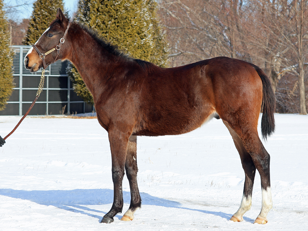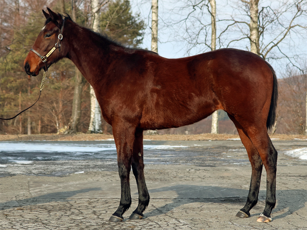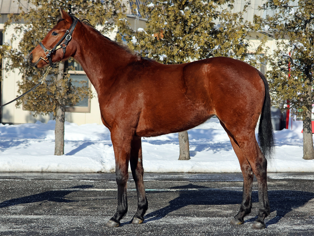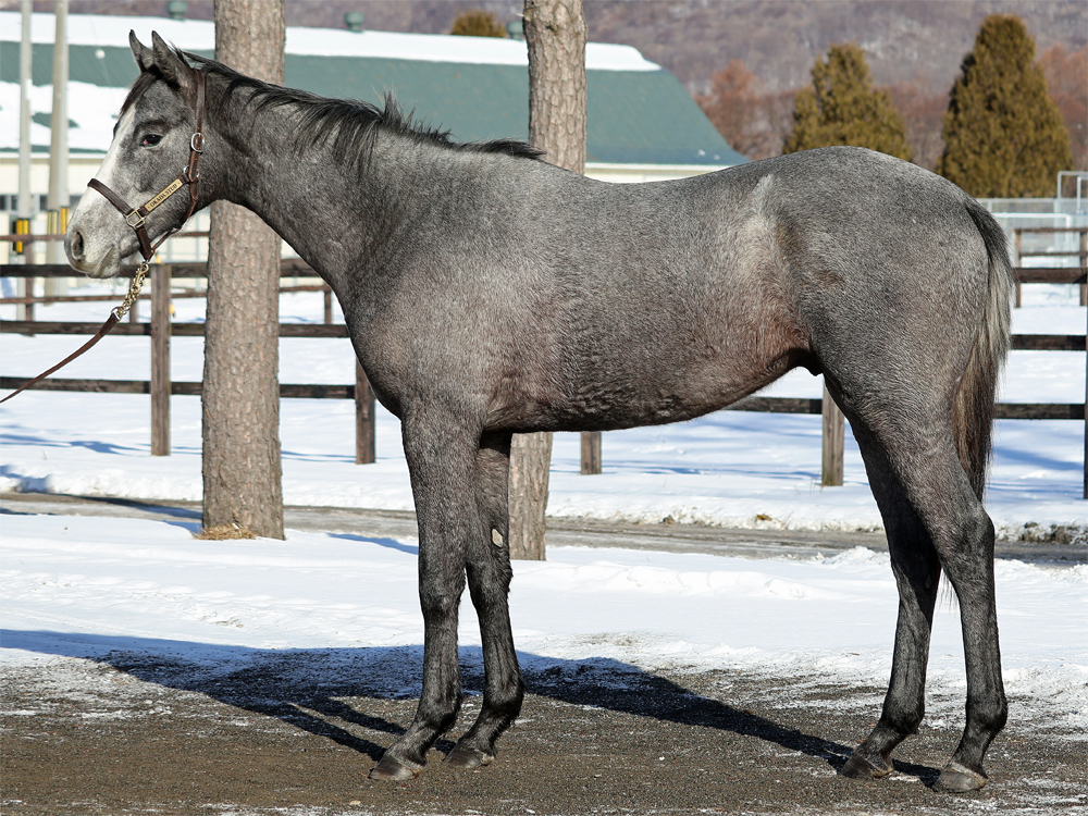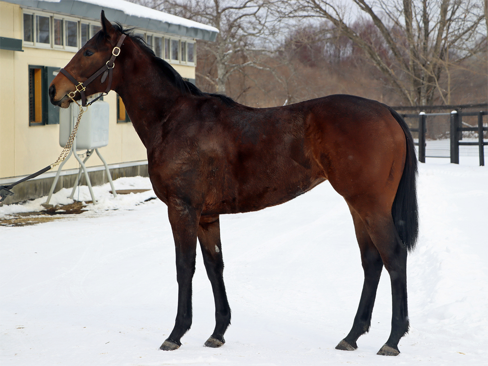 現在はBTCのウッドチップコースでハッキングキャンター2000m、屋内1000m坂路2本(上限17秒ペース)のメニューで調整しています。担当者は「年が明けてからも順調に乗り進めることができており、今は坂路でラスト1ハロン17秒までこなしています。あまり飼い葉食いが旺盛な方ではなく、やり過ぎると体を減らしてしまうこともあるため、坂路に入れる日は周回コースには行かず、ウォーミングアップ後に直接坂路へ。母の父エンパイアメーカー譲りの前進気勢があり、坂路では行きっぷり良くサーッと動けています。暖かくなってからグッと良化してきそうな印象を受けるため、もう少しの間はジックリ進めていきます」と話していました。