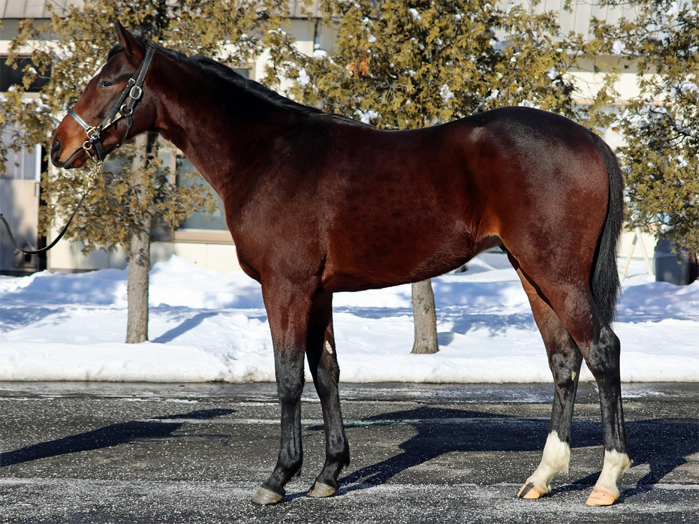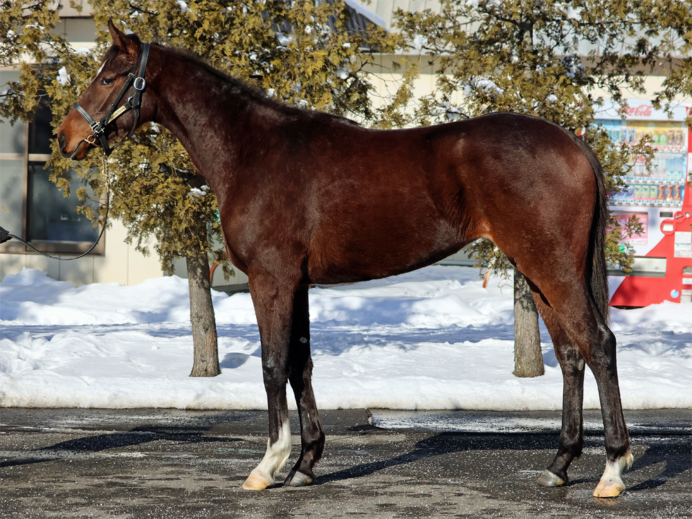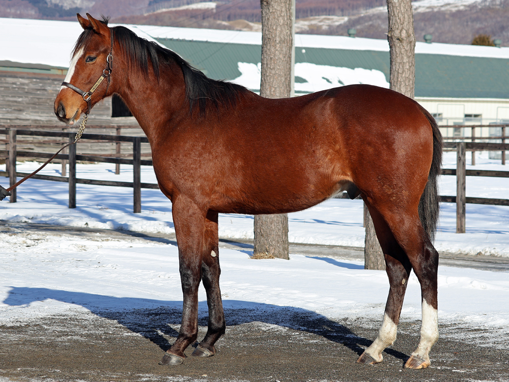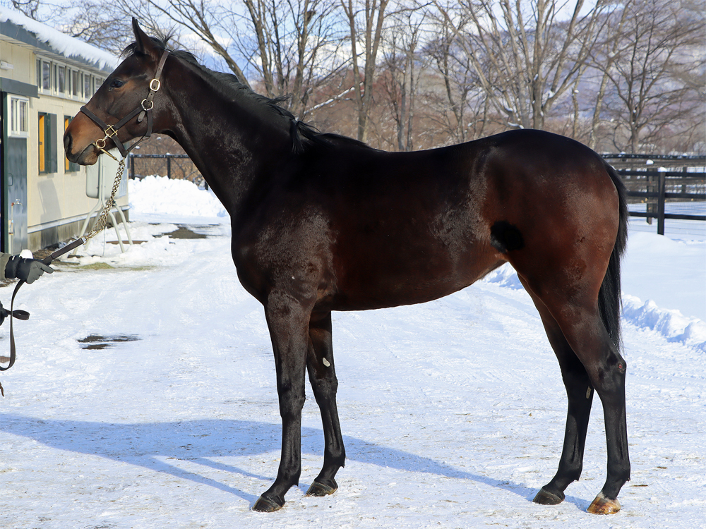 現在はBTCの屋内600mダートコースでハッキングキャンター2400~3600m、屋内1000m坂路1本(上限18秒ペース)のメニューで調整しています。担当者は「今月上旬からBTCでの調教を開始しました。広い馬場でもこれまでと同じ走り方ができており、特にクセはありません。落ち着きがあるので距離は持ちそうな印象です。今年は雪が多くて気温もかなり低いのですが、そのような環境下でもあまり冬毛が目立たないので、いいコンディションで進められていると思います。乗り込んで緩さが抜けてきたら、グンと動きが変わってきそうです」と話していました。