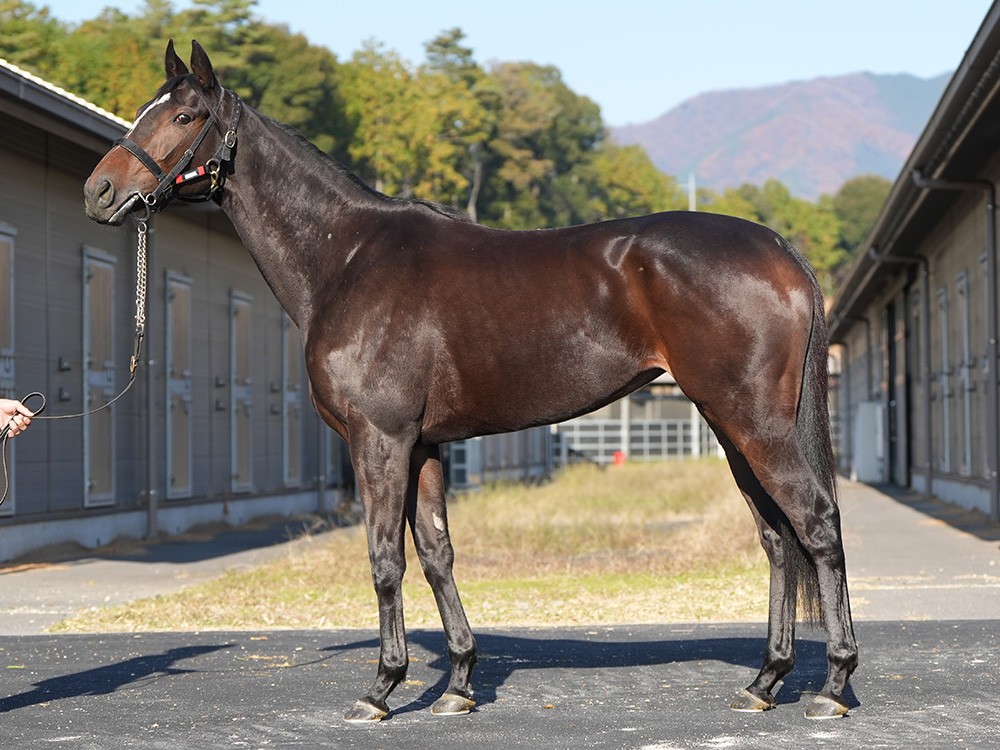 「現在は角馬場で長めのダクと本馬場でキャンター1600mを1セット(上限20秒ペース)のメニューで調整中です。入場当初は腰回りを中心に少し疲れている感じだったため、先週いっぱいはマシン運動で楽をさせ、今週に入って角馬場での騎乗運動を開始。ただ、他の馬と一緒の時は良いのですが、1頭になると嘶いたり、動かなくなったりと大変だったので、次の日からは他馬と一緒に走路調教をおこなっています。まだ左トモに弱さがありますし、脚がスラっと長い割には体が薄いので、全体的にパワーアップを図れればと思っています」(担当者)