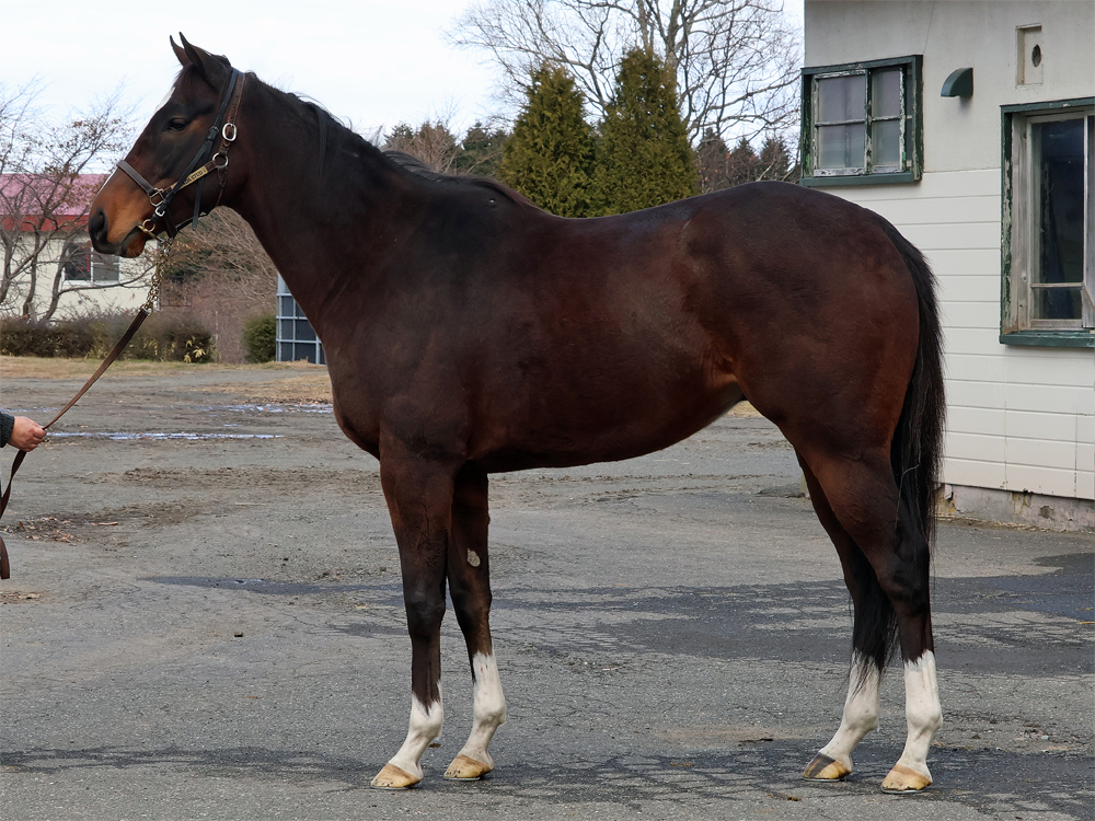 「現在はウッドコースでダクとハッキングを2800m、坂路1本(20秒ペース)のメニューで調整中です。ここまで乗ってきても何も問題は見られないことから、調教進度を上げて進めています。体調が良いのか飼い葉をしっかり食べていますし、体重も増加傾向にあるのは好感が持てるところ。この感じをキープしながら積み重ねていく予定です」(担当者)