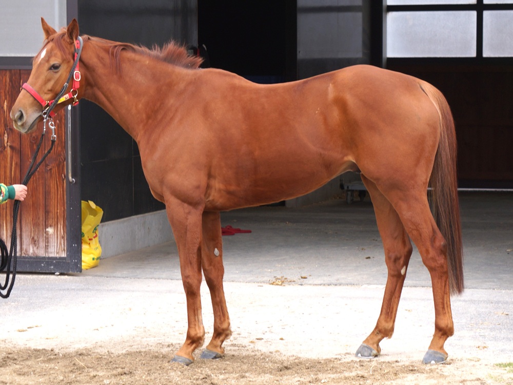 「現在は馬場をダクとハッキングキャンターで1000~3000m(上限20秒ペース)、週3回は坂路1本(15~18秒ペース)のメニューで調整中です。もっとすぐにフックラしてくるタイプだと思っていたのですが、案外増えてこないでハロン15秒を週に1本しかおこなえません。具合は悪くないので、しっかり食わし込んでもう少し余裕を持たせたいと思っています」(担当者)